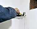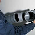 Карандашом отметить на трубе положение торца раструба, затем осторожно вытащить пластиковую трубу обратно из раструба на 9-11 мм, ориентируясь на положение карандашной метки относительно торца раструба системы пластиковой канализации |