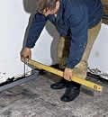 Выставить уклоны на поэтажных отводах (и на выпуске), измеряя расстояния от начала и конца трубы до горизонтальной плоскости с помощью уровня и линейки и временно закрепляя трубы на бетонных маячках. Позже эти отводы скроются под стяжкой |