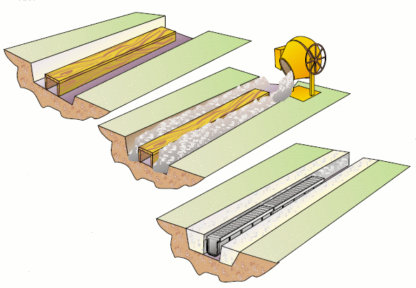 В случае если канава значительно больше размеров канала, Вы можете произвести установку двумя способами: