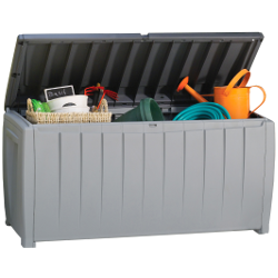 Пластиковые сундуки - это малогабаритные емкости для хранения дров, пледов, подушек, садового инструмента, детских игрушек, различного оборудования, бытовых принадлежностей. Применяются, как правило, в загородном доме, на даче. Садовые ящики могут использоваться на открытом воздухе. На сундуках есть проушины для замка и ручки для переноски. Пластик ящиков не выцветает на солнце. Сундуки всесезонного и всепогодного применения. Все сундуки поставляются в компактном разобранном виде и быстро собираются. Дно сундука выдерживает полезную нагрузку до 50 кг, а закрытая крышка нагрузку сверху до 220 кг.